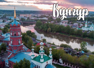 Магнит закатной 90х65 мм на металле с видами города Кунгур. Упаковка в индивидуальный пакетик.