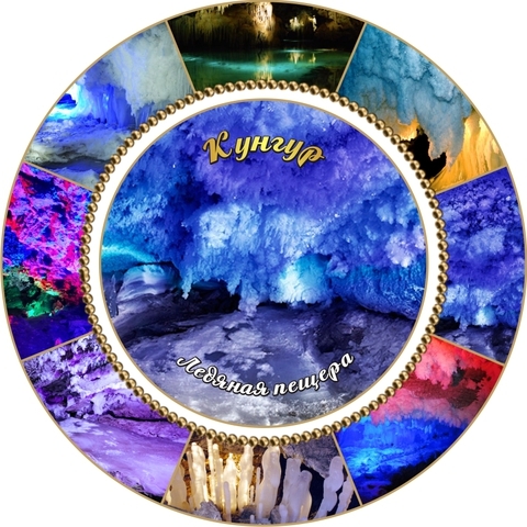 Тарелка керамическая сувенирная диаметром 16 см с достопримечательностями города Кунгур. Изображение полноцветное. В комплекте индивидуальная коробка, подвес и пластиковая подставка. Изображение стойкое, поверхность глянцевая.