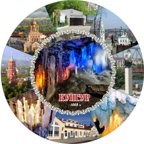 Тарелка керамическая сувенирная диаметром 21 см с достопримечательностями Кунгура. Изображение полноцветное. В комплекте индивидуальная коробка, подвес и пластиковая подставка. Изображение стойкое, не выгорает. Поверхность тарелки глянцевая.