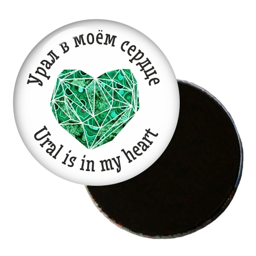 Стильный минималистичный магнит из черно-белой серии с надписью "Урал в моём сердце!" на русском и английском языках выделяется на витрине среди прочих магнитов. Такой подарок с Урала придется по вкусу любителям оригинальных сувениров. Купить закатный магнит с изображением малахитового сердца можно в магазине УралСувенир.