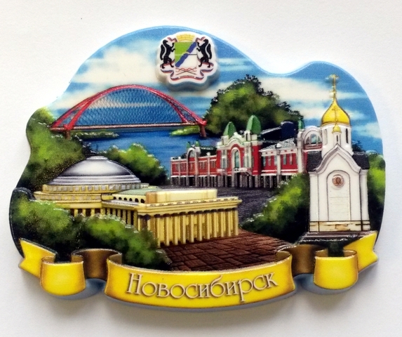 Новосибирск магнит 3Д №0002 "Коллаж желтая лента"