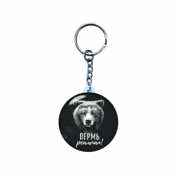 Пермь брелок закатной 44 мм №0001 Пермь реальная (медведь)