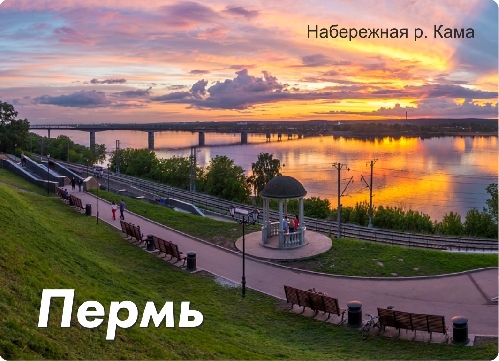 Магнит закатной 90х65 мм на металле с видами города Пермь. Упаковка в индивидуальный пакетик.