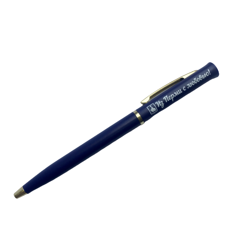 Лёгкая и изящная ручка! Цвет пасты синий, поворотный механизм. Выглядит классно, стоит недорого! Практичный сувенир из Перми по приятной цене! 👍