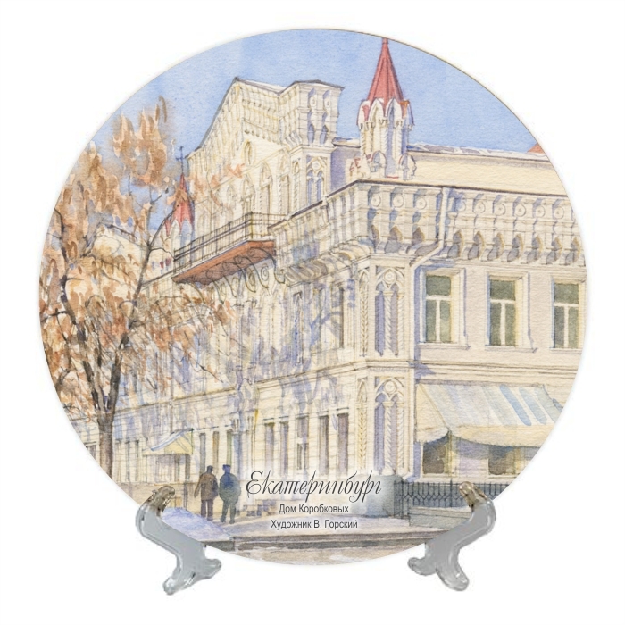 Керамическая тарелка с изображением Дома Коробковых. Художник В. Горский.