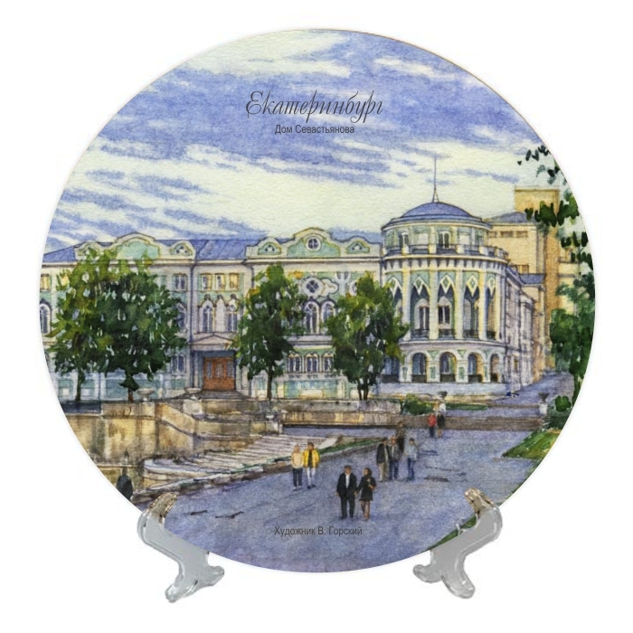 Керамическая тарелка с изображением Дома Севастьянова. Художник В. Горский.