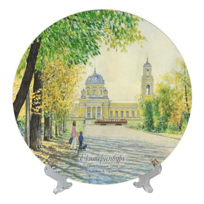 Керамическая тарелка с изображением Свято-Троицкого Собора. Художник В. Горский.