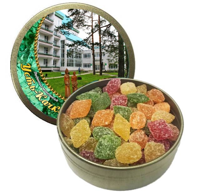 Леденцы-монпансье в жестяном футляре. Изображение-наклейка. Качество соответствует ГОСТ 6477-88. Есть сертификат. Состав: сахар-песок, патока крахмальная, регулятор кислотности кислота лимонная, ароматизатор натуральный фруктовый, натуральные пищевые красители лютеин Е161(b), бета-каротин Е160a, хлорофиллин Е141. В 100 г продукта содержится: жиров – 0,1 г, углеводов – 95,7 г. Энергетическая ценность в 100 г. – 370 ккал/1549 кДж. Хранить при температуре 18 ±3 °С и относительной влажности не более 75%. Срок годности – 12 месяцев.