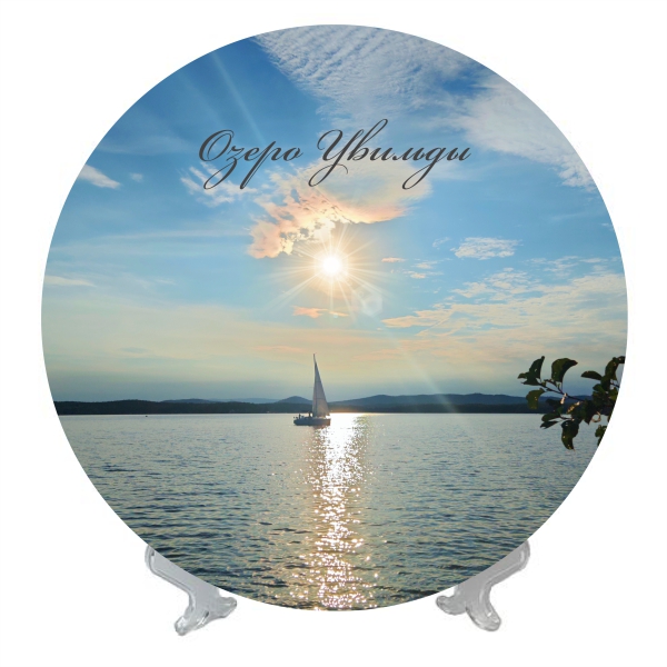 Южный Урал тарелка керамика 21 см №0018 Увильды яхта на закате